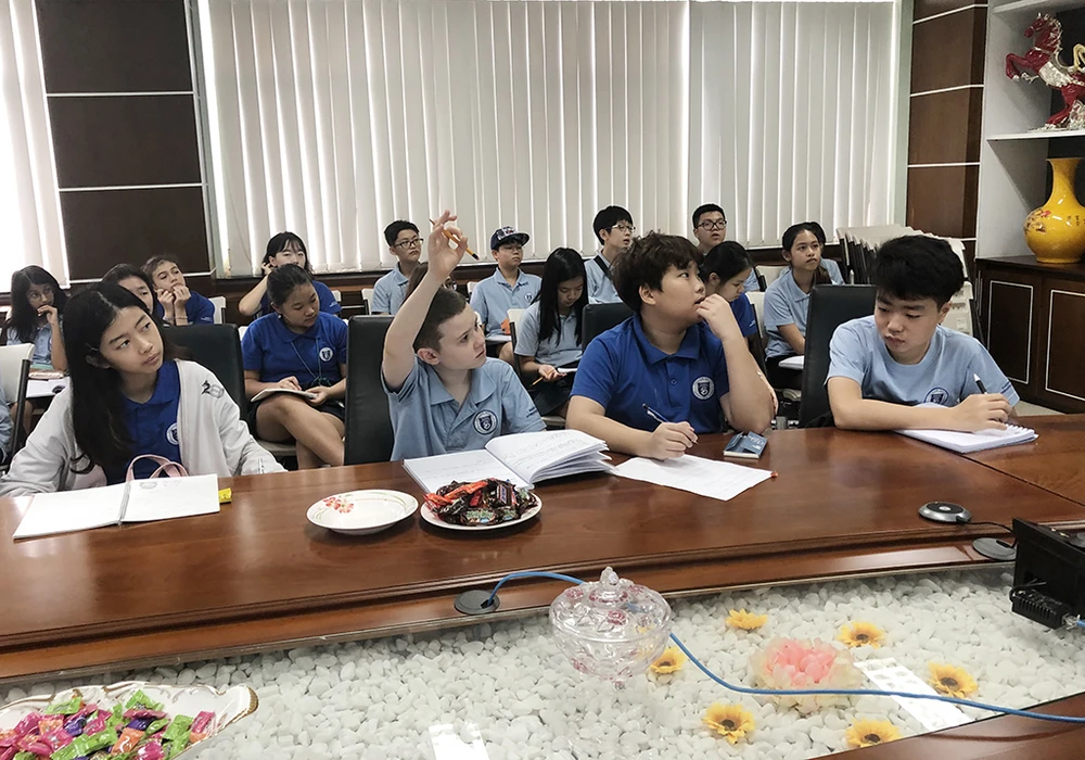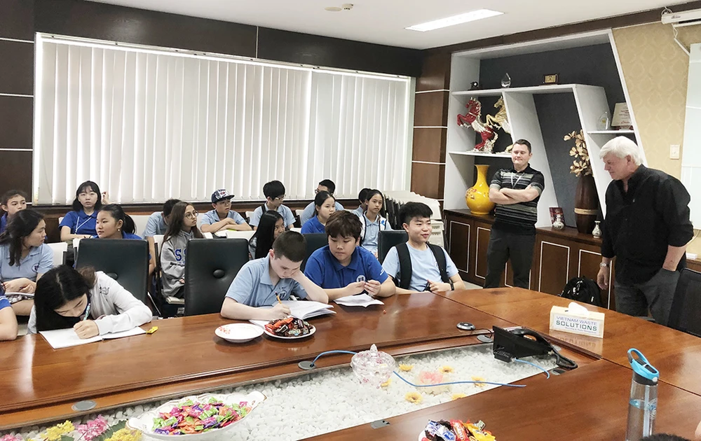 Chuyến tham quan là một phần thực tế phục vụ cho môn học “Rác thải & Xử lý nước” của các học sinh khối lớp 7. Trong chuyến tham quan Khu Liên hợp xử lý chất thải Đa Phước (thuộc Công ty TNHH Xử lý chất thải Việt Nam - VWS), các em học sinh đã rất thích thú khi được trực tiếp trao đổi với ông Kevin Moore (chuyên gia người Mỹ, Giám đốc Điều hành VWS) về các thông tin liên quan đến thu gom, xử lý rác thải và nước thải…