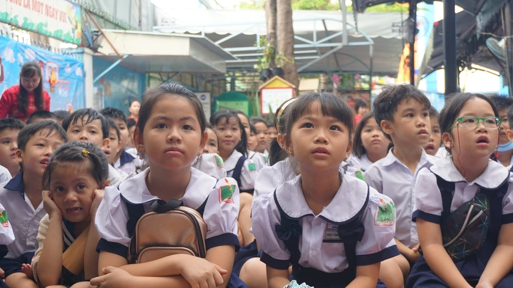 Học sinh chăm chú theo dõi chương trình. Ảnh: NQ