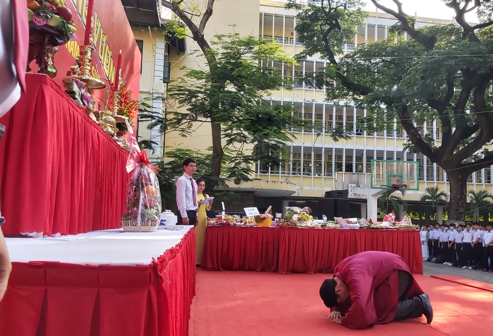 Nghi thức dâng hương của học sinh trường THPT chuyên Trần Đại Nghĩa. Ảnh: TN