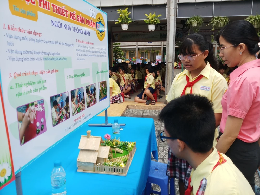 “Giáo dục STEM đã được nhà trường đưa vào giảng dạy từ năm 2017-2018. Giáo dục STEM sẽ giúp các em thực hiện được mục tiêu phát triển năng lực và phẩm chất, đáp ứng nhu cầu trong thời đại giáo dục mới. Giáo dục STEM được triển khai tại trường với nhiều hình thức như dự án STEM, ngày hội STEM, câu lạc bộ STEM, tiết học STEM. Tổ chức các câu lạc bộ theo hình thức giáo dục STEM góp phần đánh thức tiềm năng khoa học kỹ thuật của các em học sinh. Câu lạc bộ STEM là sân chơi của học sinh để các em thỏa sức đam mê khoa học, công nghệ và kỹ thuật, góp phần định hướng nghề nghiệp trong tương lai”, cô Thơ nhấn mạnh.