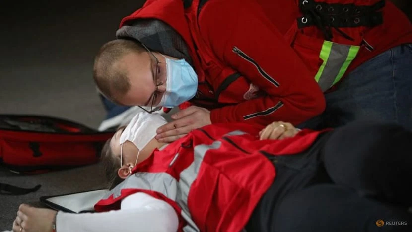 Các học sinh được học cách sơ cứu cơ bản. Ảnh: REUTERS