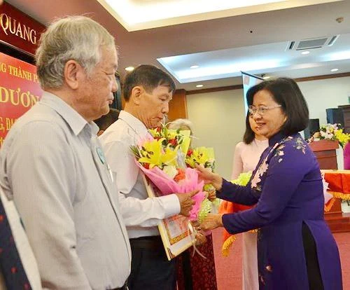 Đảng ủy Khối Dân - Chính - Đảng TP.HCM biểu dương những tập thể, cá nhân tiêu biểu. Ảnh: THANH TUYỀN.