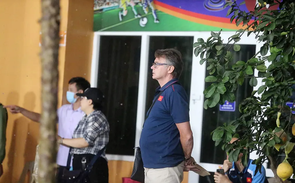 HLV đội tuyển U-19 quốc gia Troussier chăm chú theo dõi quân của ông Park trên sân tập Trung tâm đào tạo bóng đá trẻ Việt Nam...