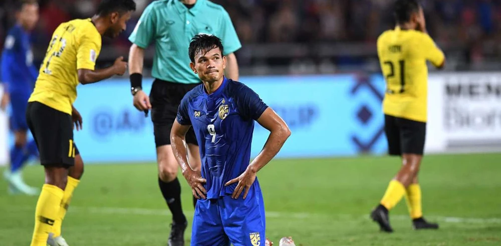 Adisak thất vọng sau khi sút hỏng quả 11 m tại bán kết AFF Cup 2018. Ảnh: GETTY