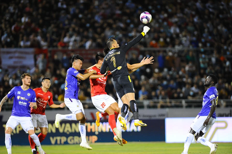 Thủ môn Tấn Trường từng bị thay thế do nhiễm COVID-19 thì bây giờ trở lại sau khi khỏi bệnh. Ảnh: AN.