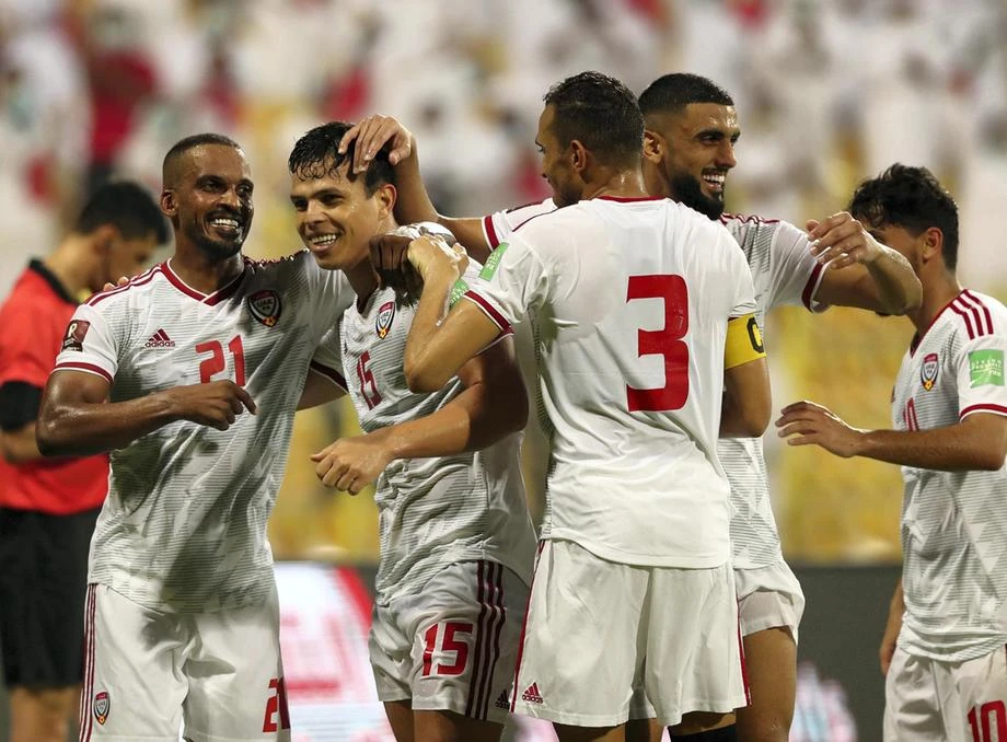 Đội tuyển UAE vươn lên nhì bảng G với 9 điểm sau năm trận, kém đội đầu bảng Việt Nam 2 điểm nhưng có hiệu số bàn thắng bại cao hơn (+8 so với +4). Ảnh: SS.