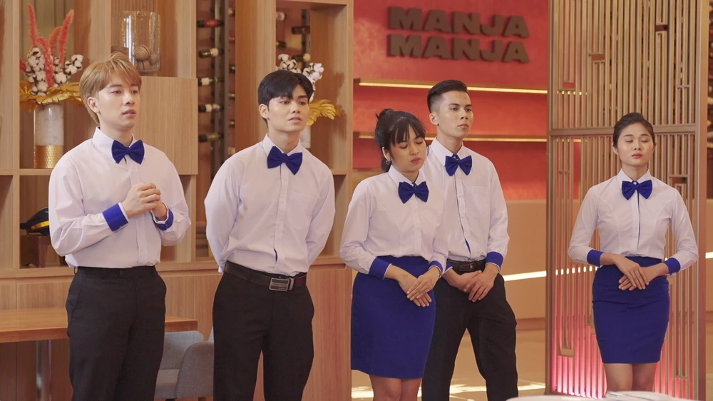 Khánh Vân lúng túng cầm một mớ dao đĩa trên tay, lại 'mày tao' với MisThy khiến thầy Xoay cảm thán: “Đây không phải là bàn ăn mà là bàn mổ, nhà hàng 5 sao mà nhân viên lại mày tao”, làm cả MisThy lẫn Khánh Vân muốn độn thổ!