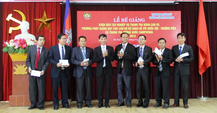 Ngày 12-4, thông tin từ Thanh tra Chính phủ (TTCP) cho biết, trong thời gian gần 2 tháng học tập, các học viên là cán bộ Bộ Quan hệ với Quốc hội- Thượng viện và Thanh tra Vương quốc Campuchia được bồi dưỡng chuyên sâu về Nghiệp vụ Thanh tra nâng cao với 5 chuyên đề về Công tác thanh tra trong hoạt động quản lý nhà nước.