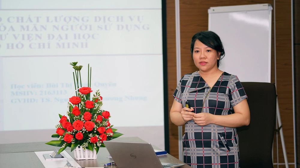 Với nhiều năm kinh nghiệm thực tiễn trong công tác quản lý thư viện đại học cùng với sự hướng dẫn của Tiến sĩ Nguyễn Thị Phương Nhung, học viên Bùi Thị Thúy Quyên đã thực hiện đề tài về các yếu tố chất lượng dịch vụ ảnh hưởng đến sự thỏa mãn người sử dụng tại một số thư viện đại học ở TP.HCM.