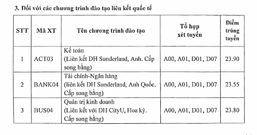 Điểm chuẩn đối với các chương trình đào tạo liên kết quốc tế Học viện Ngân hàng. |