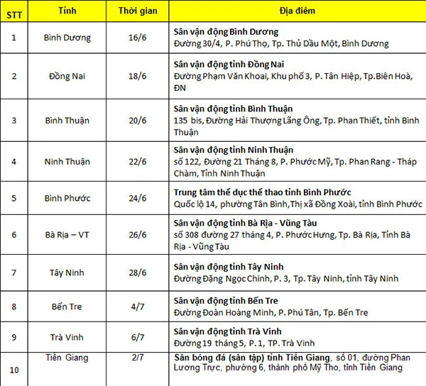 Lịch tuyển sinh Học viện bóng đá NutiFood- HAGL- Arsenal- JMG tại các tỉnh