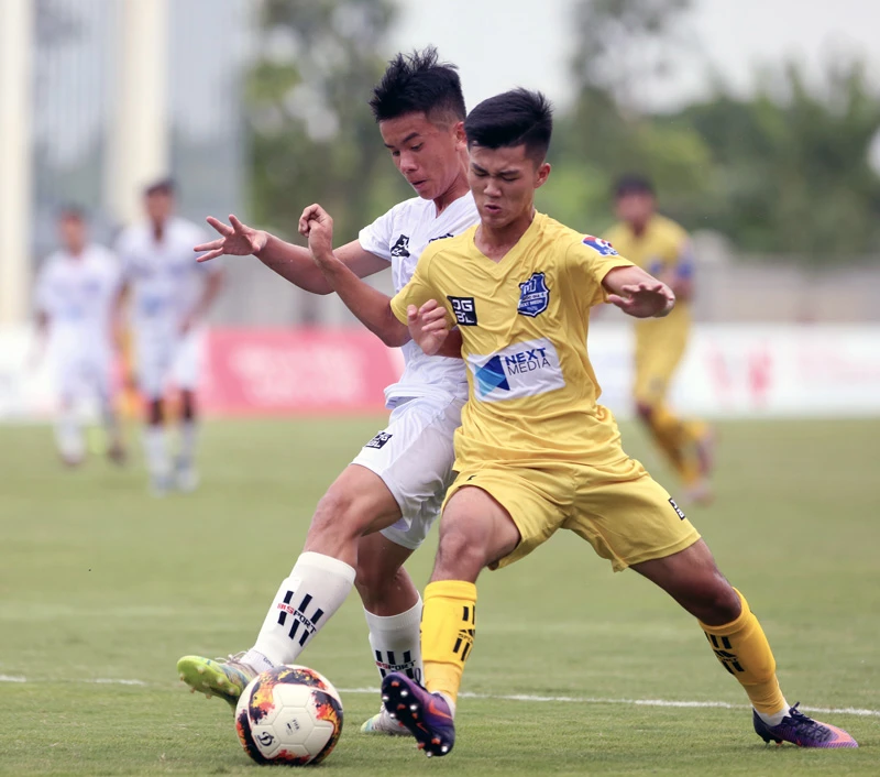 Thầy trò ở Học viện Nutifood ra sân đá trận nào cũng với tư tưởng như chơi trận chung kết. Có lẽ điều đó giúp các cầu thủ trẻ tập trung và gắng sức hơn. Họ sớm dẫn SL Nghệ An ba bàn ngay trong hiệp một do công Khánh Duy mở điểm và cú đúp của Hoàng Minh.