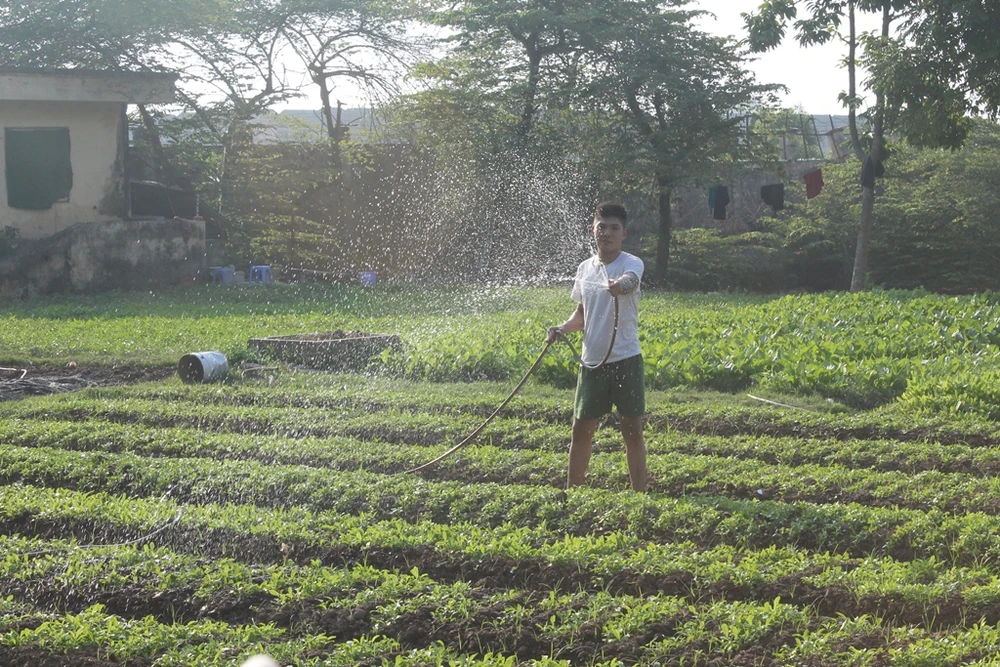 Chiều đến, các học viên lại chăm sóc vườn rau của trung tâm để cải thiện bữa ăn hằng ngày. Ảnh: VIẾT LONG