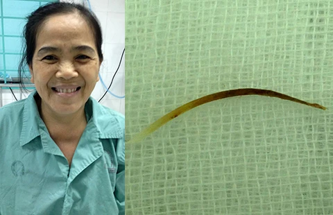 “Chúng tôi thực hiện đẩy ngược xương cá xuống để xem hai đầu có đâm sâu vào khí quản hay không. Nếu kéo ngược xương thì vô tình đẩy xương cá lún sâu hơn và có thể gây thủng khí quản dẫn đến tai biến chảy máu, tràn khí, áp xe nhiễm trùng trung thất và đe dọa tính mạng bệnh nhân. Trong ba phút, chúng tôi đã gắp thành công mảnh xương cá ra khỏi khí quản bệnh nhân. Lúc này mảnh xương cá đã biến màu đen, dài 3 cm, trong khi đường kính khí quản chỉ có 1,5-1,8 cm” - BS Hớn kể.