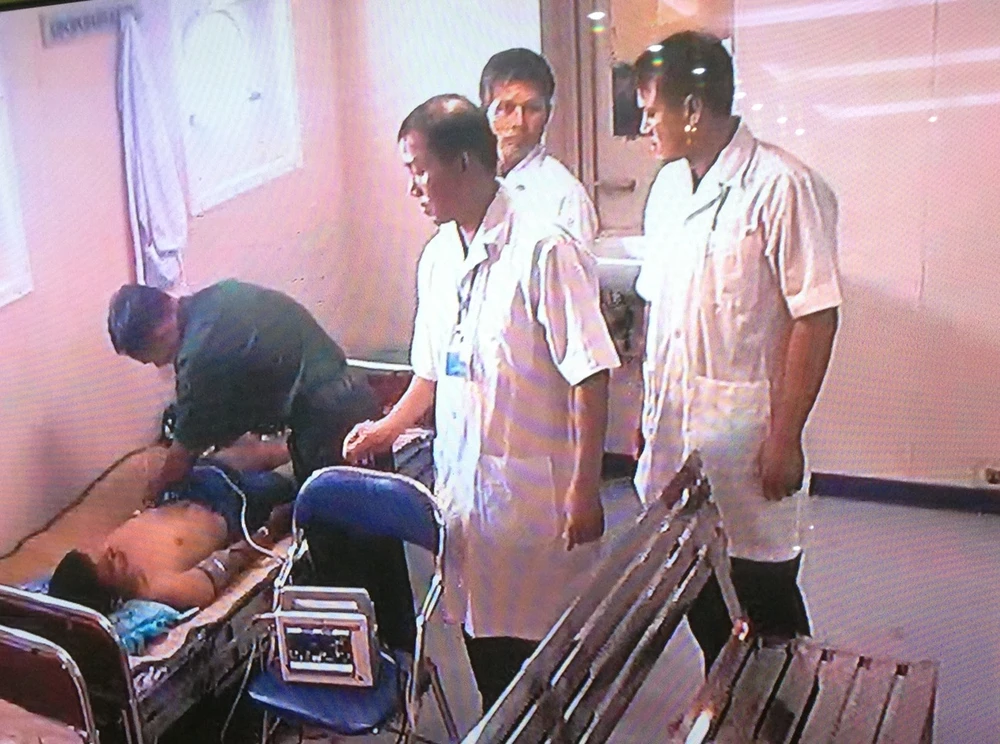 Tuy nhiên mạch, huyết áp ổn định, không sốt,phản xạ mắt còn. Trên cơ thể bệnh nhân không có chấn thương. Bệnh nhân được cho thở oxy, truyền ba lít dịch, 50% muối, 50% đường. Trưa nay, bệnh nhân được chuyển từ đảo lên tàu HQ561 để điều trị, hội chẩn cứu bệnh nhân.