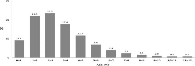 Hình 2: Phân bố tỉ lệ SIDS theo tháng tuổi ở Hoa Kỳ, 2004-2006.