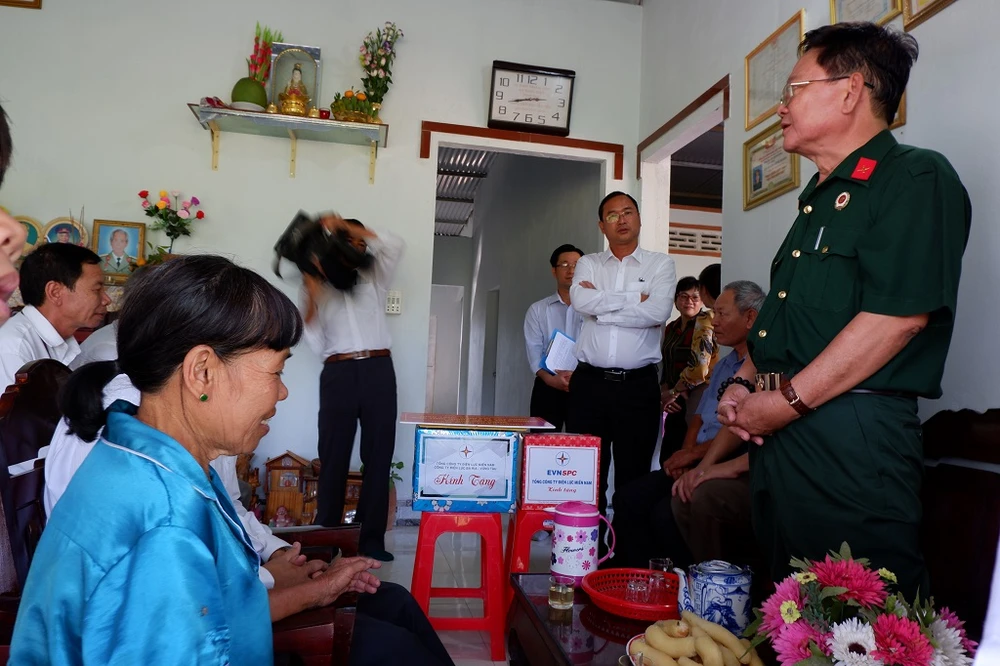 Ông Nguyễn Văn Chương, Phó Tổng biên tập báo Pháp Luật TP.HCM (bìa phải), kỳ vọng các gia đình chính sách luôn "giử lửa" cách mạng, lòng yêu nước. Ảnh: TRÚC PHƯƠNG