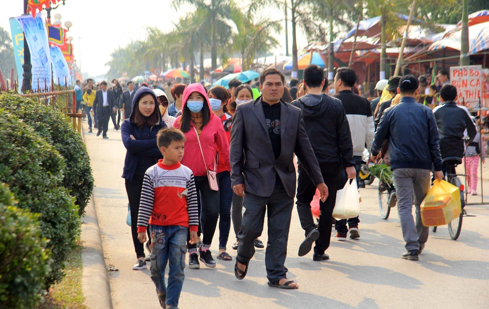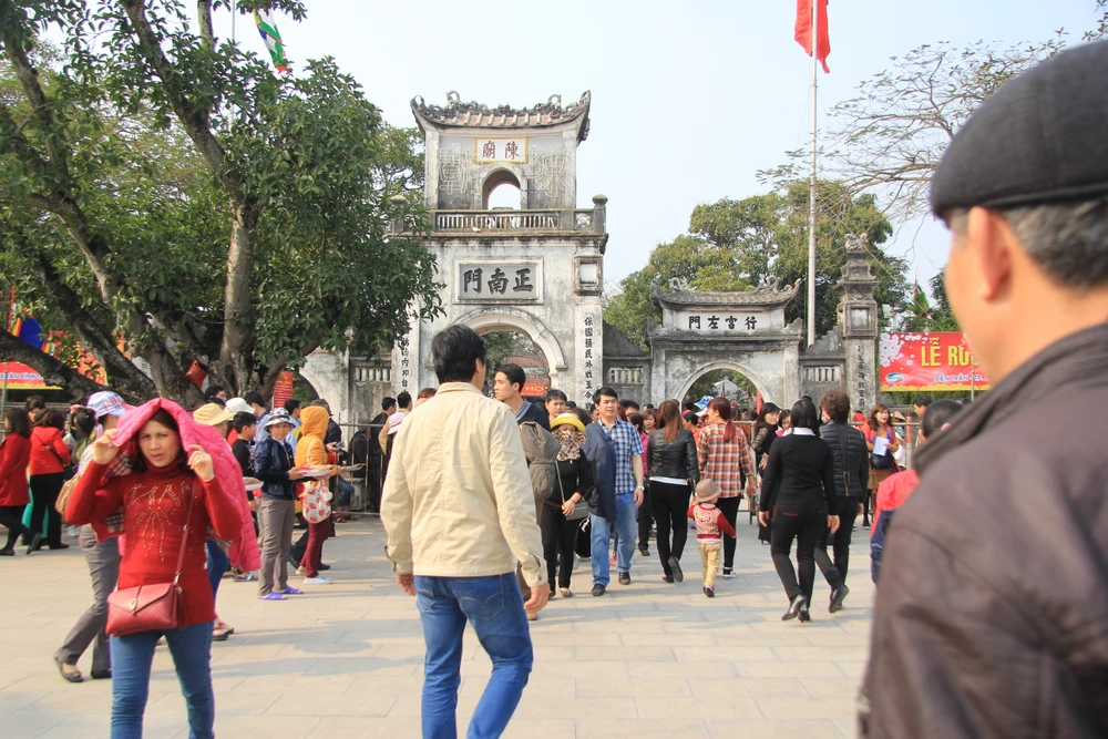 Du khách nườm nượp tiến vào đền Trần.