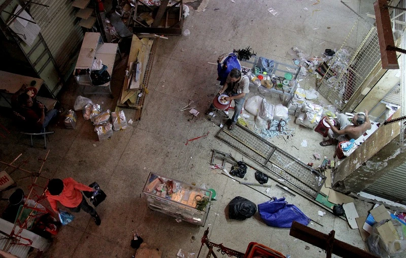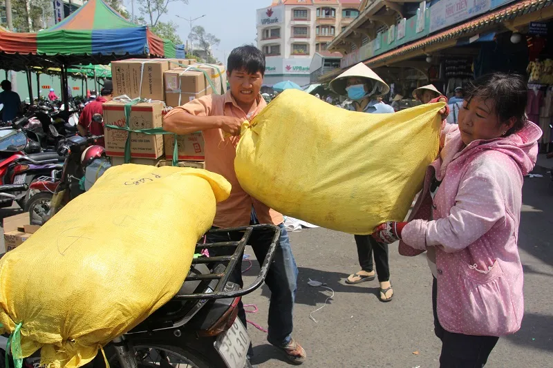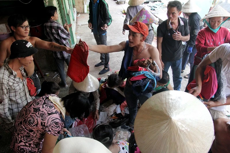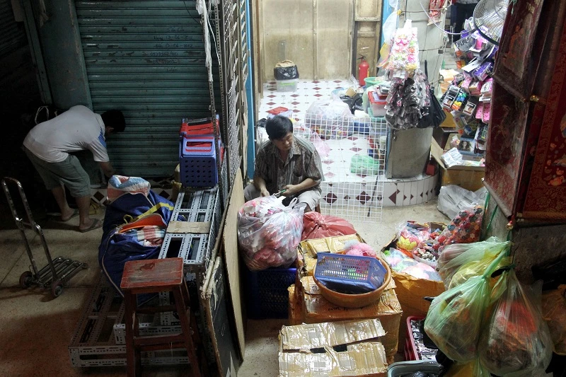 Tiểu thương hối hả chuyển hàng hóa đi trước ngày chợ chưa đóng cửa hẳn.