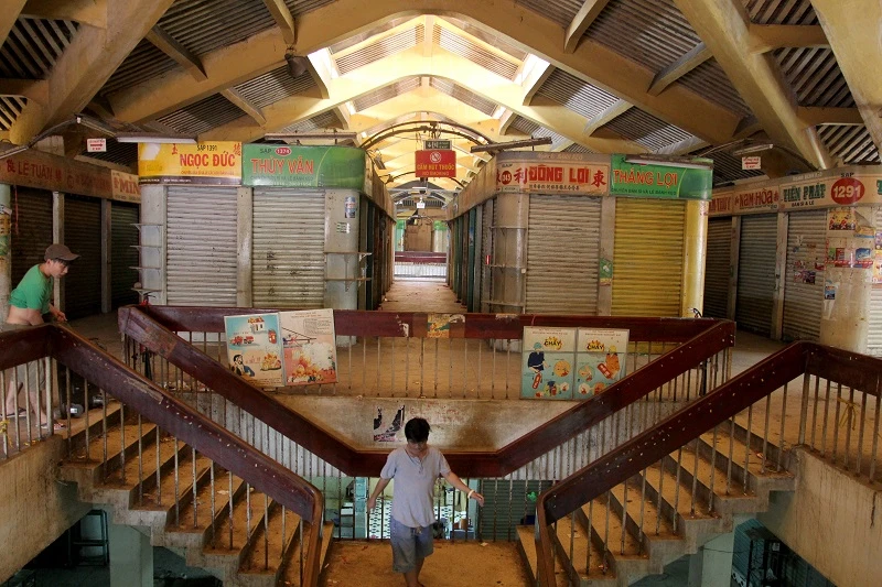 Đa số các sạp hàng đã cơ bản dọn đi hết, khu nhà lồng chợ Bình Tây trở nên vắng vẻ.