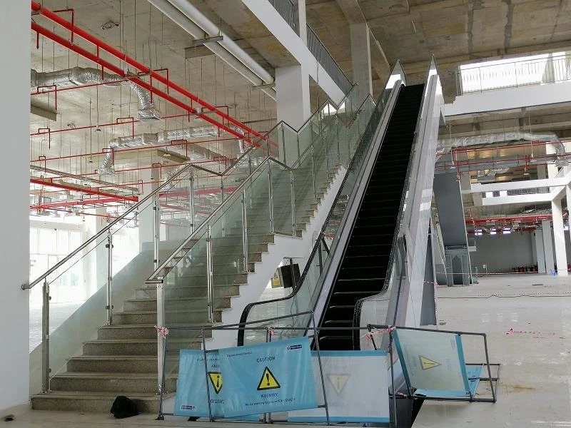 Cầu thang bộ và thang máy đã được lắp đặt. Ảnh: Thu Trinh.