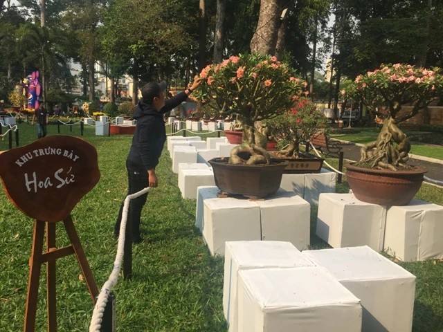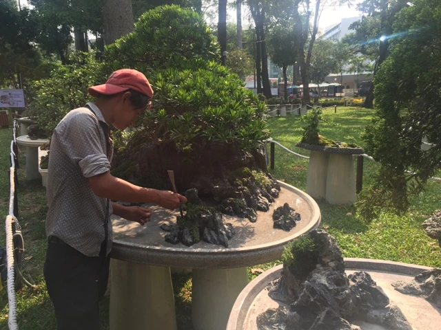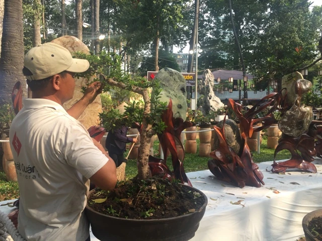Các loại cây cảnh, đá cảnh, kiểu cũng được chăm sóc kỹ lưỡng trước ngày đón khách đến với Hội Hoa.