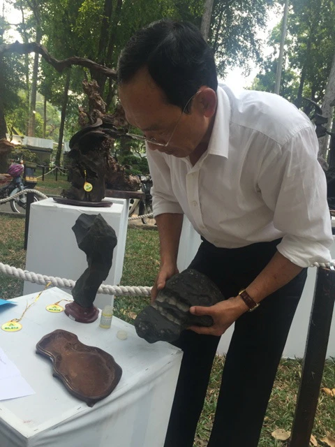 … và cả các khối, miếng đá tự nhiên nhưng đã mang dáng hình nghệ thuật với những cái tên gợi cảm như hòn vọng nguyệt, thiếu nữ ngắm trăng…