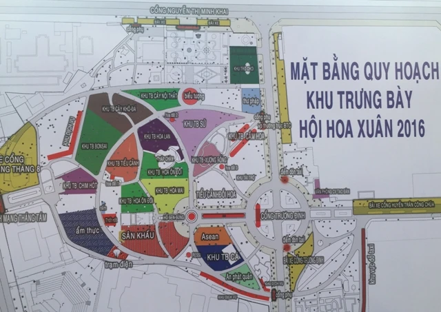 Theo Ban tổ chức, Hội Hoa năm nay có hơn 3.000 hiện vật, cây cảnh, chim, cá…. Được phân chia vào hơn 40 khu, tiểu khu khác nhau… Quy mô trải rộng như thế nên bạn rất dễ lạc vào vườn tiên cảnh Xuân 2016. Không sao! Ban tổ chức đã bố trí ở các cổng chính và phụ những bản sơ đồ toàn cảnh Hội Hoa và các khu vực như thế này để bạn dễ chọn điểm đến thưởng lãm.