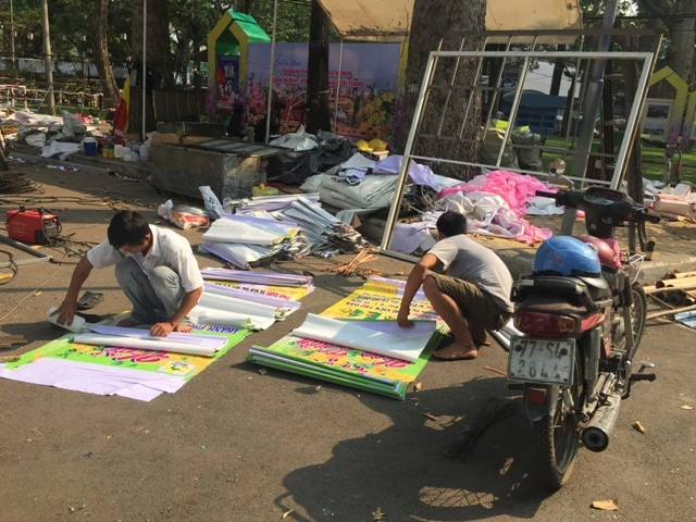 Đến 16 giờ chiều nay (2-2) các gian trưng bày đang được gấp rút hoàn thiện.