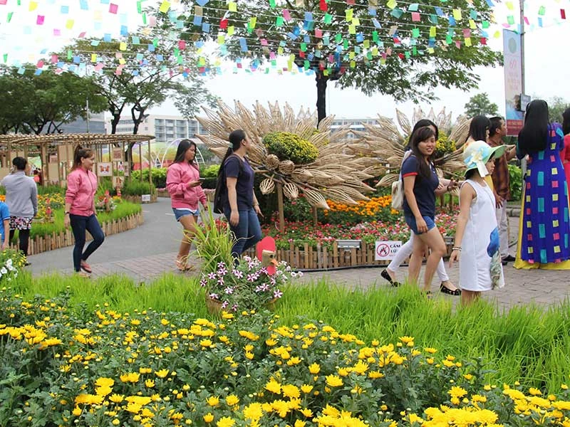 Hội chợ hoa xuân Phú Mỹ Hưng Tết Đinh Dậu 2017 vừa khai mạc vào tối qua (21-1) với nghi thức hát chầu văn. Tiếp nối thành công của những năm trước và bám sát chủ đề đã được đăng ký bản quyền là Hoa đồng cỏ nội, hội chợ hoa xuân Phú Mỹ Hưng Tết Đinh Dậu 2017 sẽ mang đến cho khách tham quan một không gian văn hóa làng quê của đất nước Việt Nam với chủ đề chính là Xuân no ấm ở bốn cụm chính nằm trong khu vực The Crescent (hồ Bán Nguyệt) và khu đô thị Phú Mỹ Hưng. Cụm Đường xuân là điểm nhấn chính của hội chợ hoa xuân Phú Mỹ Hưng với ba phân đoạn chính: Ngày mới, Bội thu và No ấm. Cụm Đường xuân sẽ có gia đình gà bằng chất liệu mây, tre…; các thúng hoa, chậu hoa nhỏ xinh được thiết kế cách điệu thành đàn gà. Đây cũng là nơi có bộ sưu tập hình ảnh, mô hình, thông tin các chủng loại gà của mọi miền đất nước. Cùng với gà là không gian các đồng lúa chín vàng với diều bay rợp trời; những chú bù nhìn tạo dáng mới lạ; những cánh chuồn chuồn đủ màu sắc bay lượn trên vạt cỏ, đồng lúa; cánh đồng hoa hướng dương vàng rực như ánh mặt trời… Và cả một khu chợ quê giữa lòng phố thị.