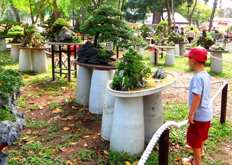 Khu trưng bày triển lãm có khoảng 3.000 hiện vật. Ngoài hoa, cây kiểng, đá cảnh, non bộ, cá…, năm nay có thêm khu trưng bày chim cảnh.