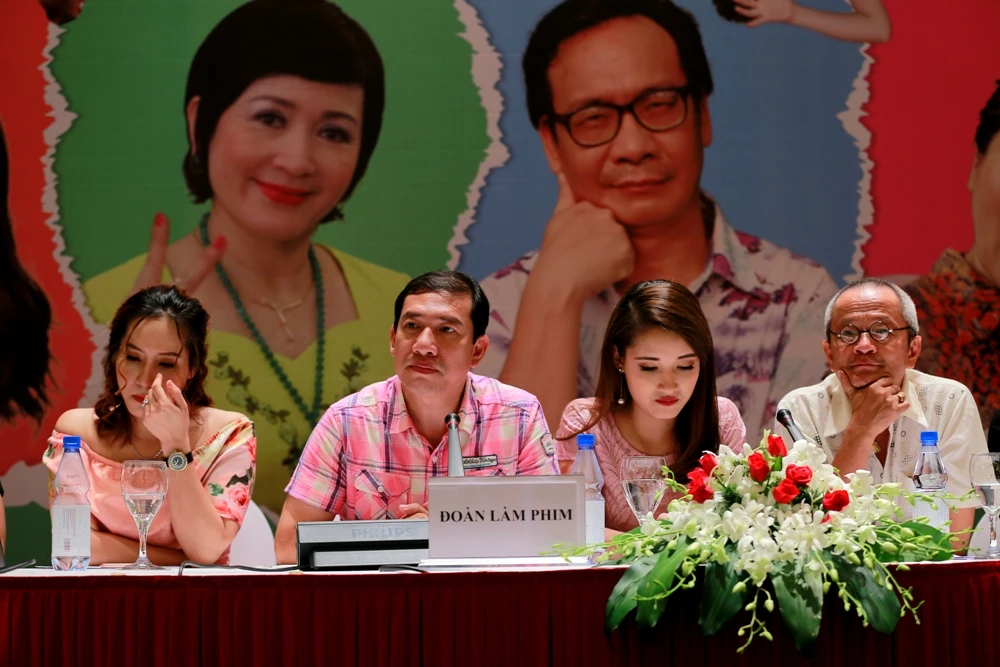 Thành viên đoàn làm phim chia sẻ thông tin với báo chí