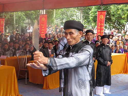 Theo quan sát của PV, nghi thức phát lời thệ “không đụng vào của công” được tổ chức rất trang trọng: Những người tham gia lễ phải chay tịnh, tắm rửa trước tế lễ, chuẩn bị hịch thề, tế phẩm. Tế phẩm gồm có rượu trắng, gà trống chân vàng, mào đỏ. Hịch thề là lời thề viết theo lối văn cổ. Trong đó có đoạn viết: “Ai lấy của công dùng vào việc công xin thần linh ủng hộ. Ai lấy của công dùng vào việc tư, cầu thần linh đả tử… làm tôi bất trung, làm con bất hiếu, xin thần linh tru diệt…”.