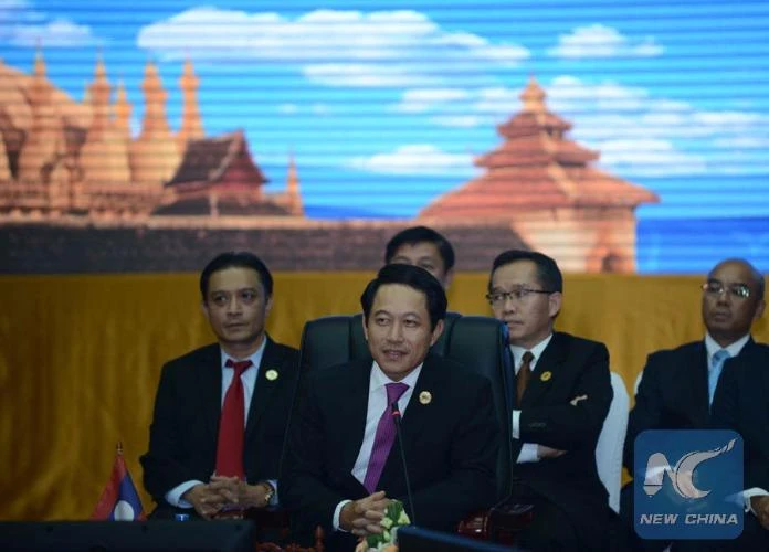 Bộ trưởng Bộ ngoại giao Lào Saleumxay Kommasith (phía trước) tại hội nghị. Ảnh: Tân Hoa Xã
