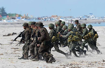 | Ngày 9-5, trong khuôn khổ cuộc tập trận chung Balikatan 2014, 127 lính thủy đánh bộ của Philippines và Mỹ cùng với hai tàu hải quân Philippines đã tập trận tấn công đổ bộ ở bờ biển TP San Antonio thuộc tỉnh Zambales (tây bắc Philippines). Người phát ngôn hải quân Philippines cho biết cuộc tập trận này đã được lên kế hoạch từ trước và không liên quan đến căng thẳng tranh chấp biển Đông giữa Trung Quốc và Philippines. |