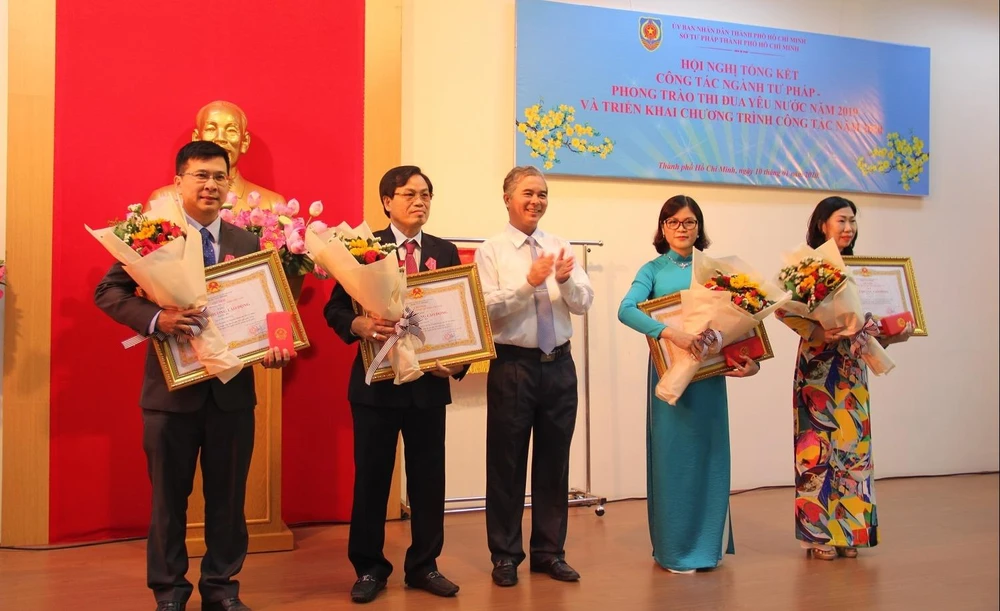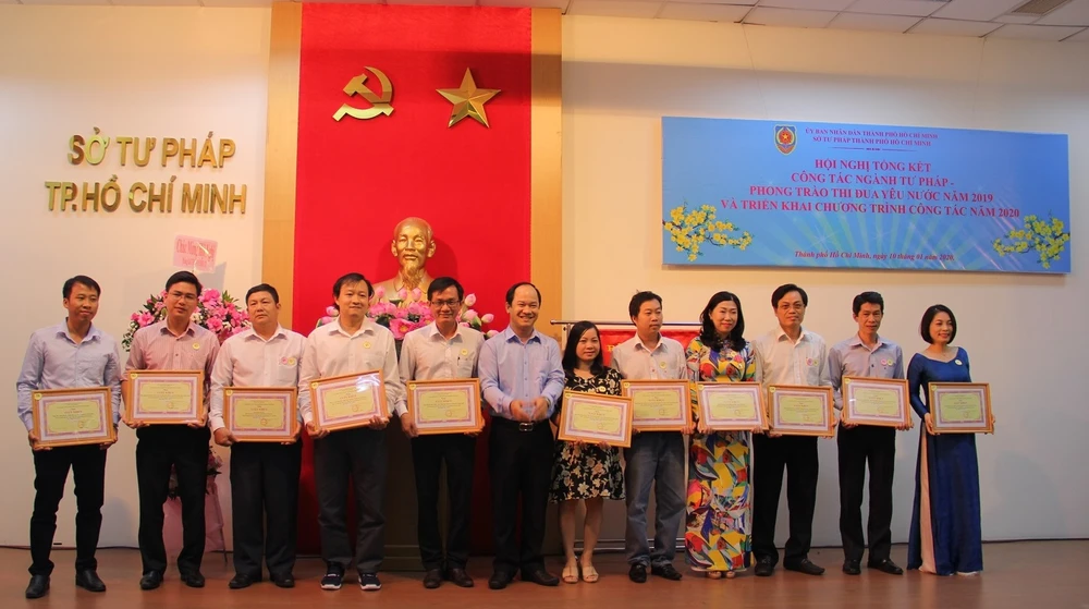 Để ghi nhận thành tích một năm qua, các tập thể, cá nhân thuộc Sở Tư pháp TP.HCM được trao tặng những bằng khen, danh hiệu của UBND TP.
