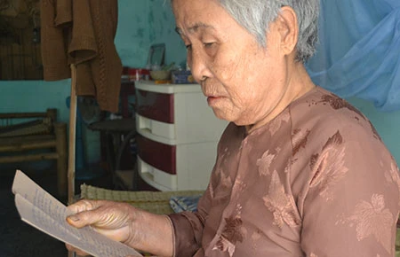 Mẹ liệt sĩ của liệt sĩ Nguyễn Bá Cường - tàu HQ-605 đọc lại những lá thư của con trai gửi trước ngày hy sinh.