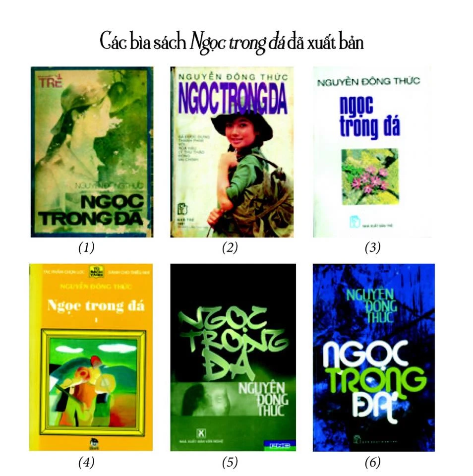 Kỷ niệm 30 năm tác phẩm Ngọc trong đá của nhà văn Nguyễn Đông Thức phát hành, quyển sách đã được tái bản và giáo lưu ký tặng tại hội sách lần này. Trong ảnh, các bìa sách Ngọc trong đá đã được in trong 30 năm qua