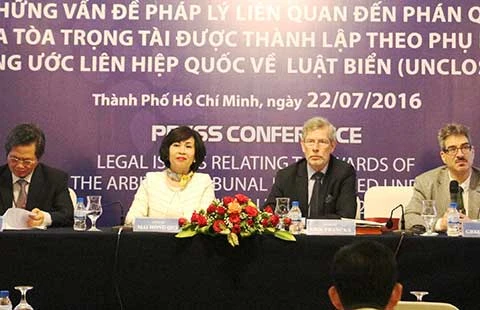 Tại buổi họp báo, GS-TS Mai Hồng Quỳ, Hiệu trưởng Trường ĐH Luật TP.HCM, cho biết: Ngày 12-7, Tòa Trọng tài đã công bố phán quyết cuối cùng về vụ Philippines kiện Trung Quốc (TQ). Theo bà Quỳ, việc phân tích tác động của những vấn đề pháp lý liên quan đến phán quyết của Tòa Trọng tài có một ý nghĩa rất lớn đối với không chỉ Việt Nam mà còn đối với hầu hết các quốc gia trong khu vực.