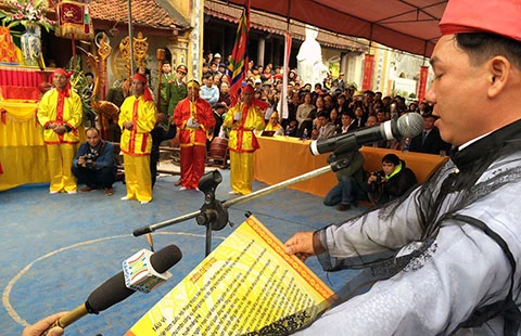 Nghi thức đọc lời thề trong hội Minh Thề. Ảnh: TRỌNG PHÚ