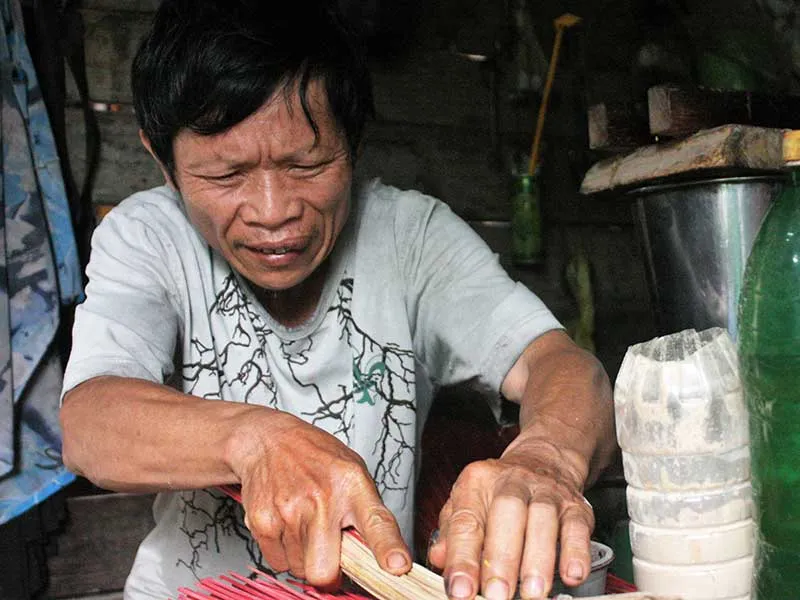 Hằng ngày ông Trần làm nhang bán lấy tiền lo cho cuộc sống. Ảnh: V.HỘI