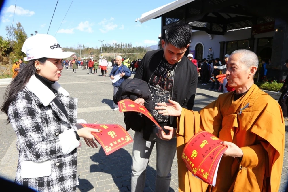 Ngay trong ngày khai hội, không chỉ thưởng thức những tiết mục múa khèn và biểu diễn nghệ thuật dân tộc đặc trưng vùng Tây Bắc, các Phật tử, du khách thập phương tới chiêm bái, nguyện cầu còn được tặng chúc phúc trì chú từ đại đức Thích Chân Hiền để được viên mãn nhân ngày đầu năm mới, trước khi bắt đầu hành trình lên “cổng trời” trên nóc nhà Đông Dương huyền thoại.
