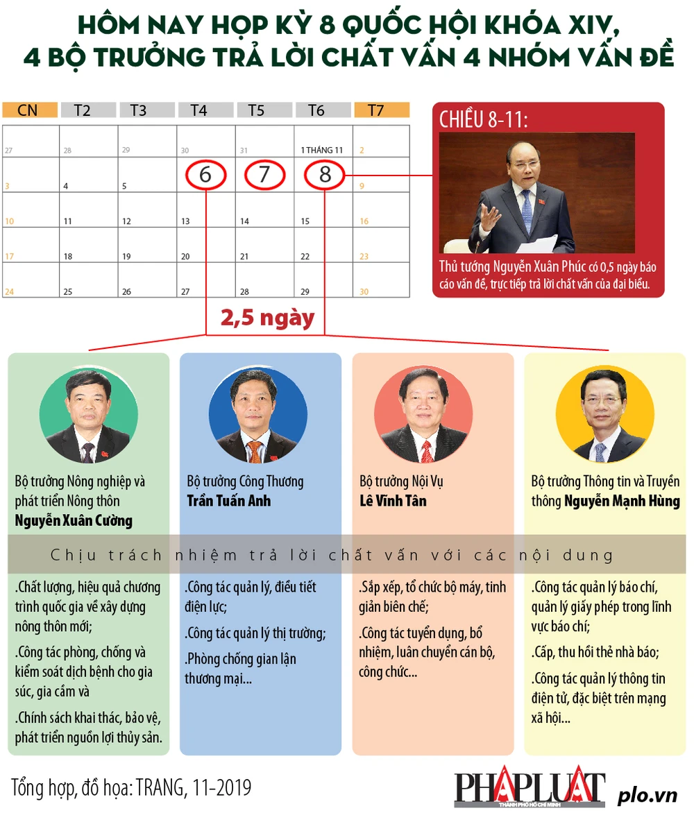 (PLO)- Hôm nay 6-11, bốn Bộ trưởng đăng đàn trước Quốc hội trả lời chất vấn về nhiều nội dung rất đáng quan tâm.
