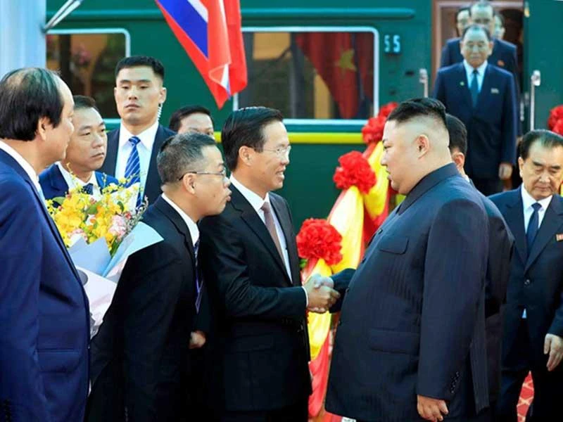Đón ông Kim Jong-un và đoàn lãnh đạo Triều Tiên tại ga Đồng Đăng, về phía Việt Nam có Ủy viên Bộ Chính trị, Trưởng ban Tuyên giáo Trung ương Võ Văn Thưởng; Ủy viên Trung ương Đảng, Bộ trưởng-Chủ nhiệm Văn phòng Chính phủ Mai Tiến Dũng; Bí thư Tỉnh ủy Lạng Sơn Lâm Phương Thanh và Thứ trưởng Ngoại giao Lê Hoài Trung. Sau khi chào xã giao, ông Kim Jong-un đã lên ô tô với sự hộ tống của các lực lượng đảm bảo an ninh, di chuyển về khách sạn Melia (Hà Nội). Đến khoảng 11 giờ, ông đã đặt chân tới trung tâm TP Hà Nội. Chủ tịch TP Hà Nội Mai Đức Chung đã đến chào xã giao chủ tịch Triều Tiên cùng phái đoàn.