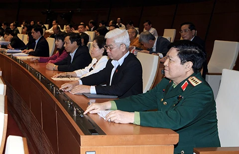 Các đại biểu nhấn nút biểu quyết miễn nhiệm chức danh Chủ tịch Quốc hội, Chủ tịch Hội đồng Bầu cử Quốc gia. Ảnh: TTXVN