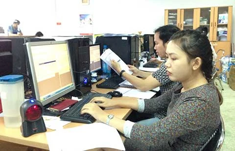 Cán bộ Trường ĐH Công nghiệp TP.HCM nhập liệu hồ sơ thí sinh đăng ký xét tuyển qua bưu điện những ngày cuối. Ảnh: P.ĐIỀN