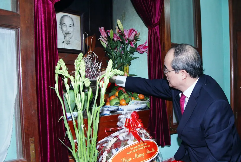 Chủ tịch UB Trung ương MTTQ Việt Nam Nguyễn Thiện Nhân bắt đầu ngày làm việc đầu năm mới bằng việc dâng hương tưởng nhớ Chủ tịch Hồ Chí Minh