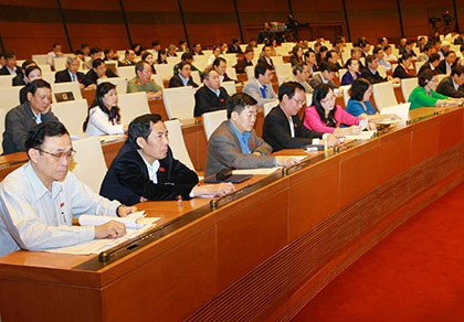 Các đại biểu Quốc hội ấn nút biểu quyết danh sách những người được Quốc hội tiến hành lấy phiếu tín nhiệm. Ảnh: TTXVN