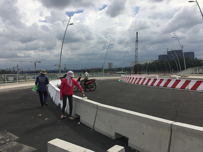 Dịp này, Sở GTVT TP thông báo tổ chức phân luồng giao thông tạm tại khu vực này. Cụ thể, từ ngày 15-9, tuyến đường D1 sẽ được lưu thông hai chiều với các loại xe; cấm các loại phương tiện rẽ trái từ đường D1 (theo hướng lưu thông từ đường D6 đến đường Nguyễn Văn Linh) vào đường dân sinh bên hông cầu Ông Lớn; tốc độ tối đa cho phép trong hai ngày đầu thông xe tạm là 10 km/giờ và trong bảy ngày tiếp theo là 20 km/giờ.