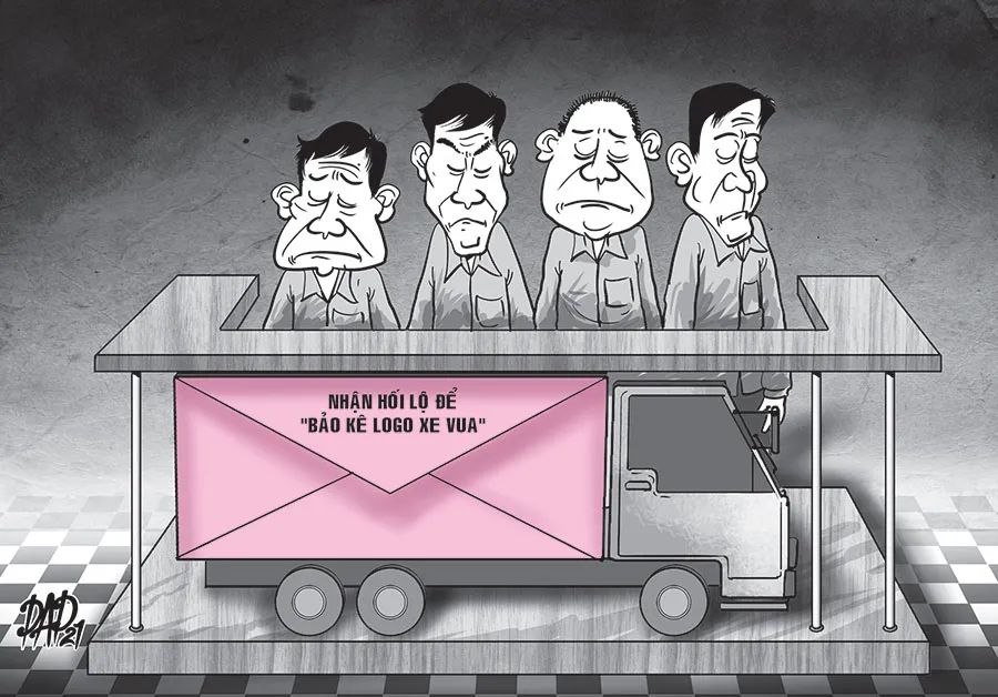 Nhận tiền từ nhóm “bảo kê logo xe vua”, các cựu cán bộ thanh tra giao thông làm ngơ hoặc phạt lỗi nhẹ hơn so với thực tế đối với các xe tải có dán logo của Công ty Tuấn Vinh.